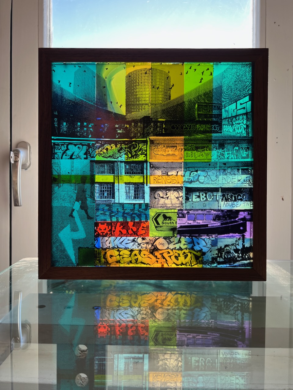 Reflections of Leytonstone in blue , HALTglass