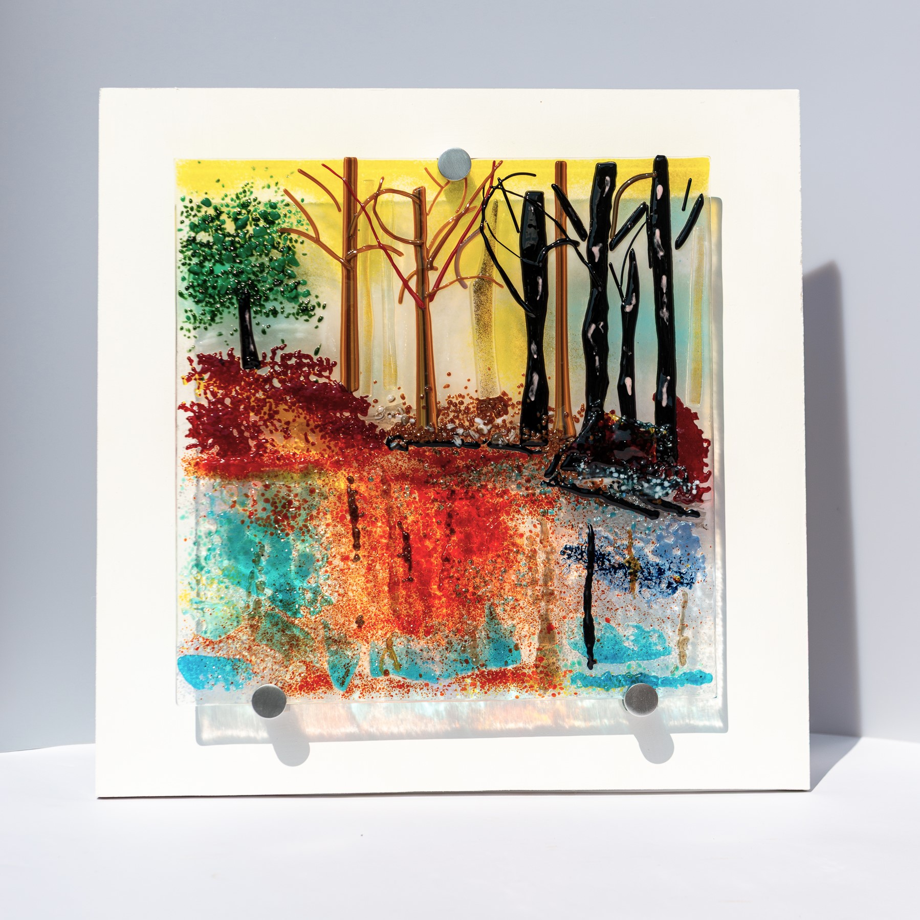 I am a self-taught glass artist working from my studio in the New Forest for over 10 years. My background is in chemistry and law but my journey with this captivating medium began during a visit to Cornwall. I have been inspired by fellow artists and have improved my art by attending a range of master classes, My designs often capture the changing colours and textures of the New Forest, the shimmering reflections of the water and sea of Cornwall as well as abstract interpretations of nature.