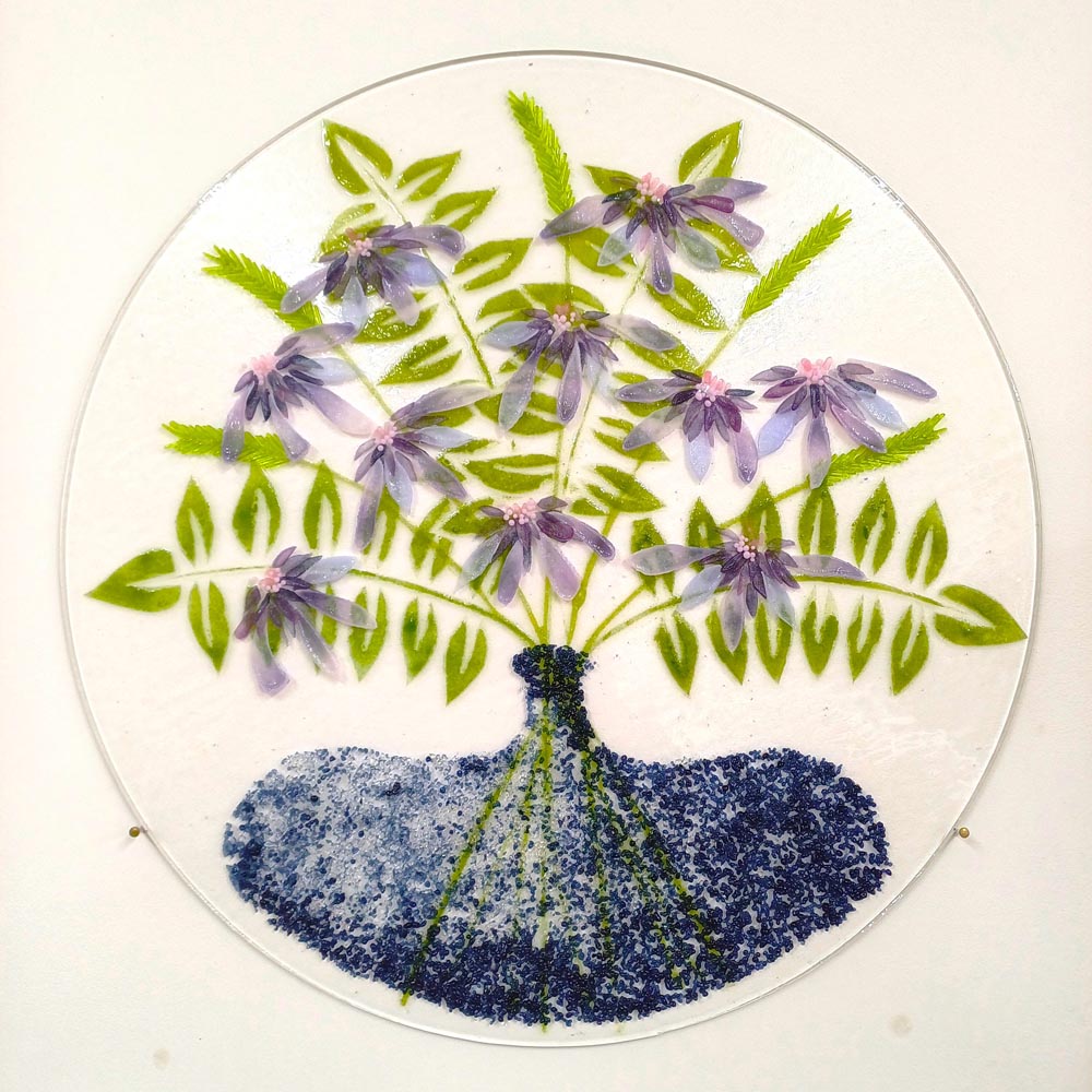 I am following two interlinked paths. The first being my love of flora, fauna and fabrics – the start of my creative journey – introduced by my mother from a very young age. The second being my love of gardening and my work for the past 23 years, during this time I was bequeathed a small sum from a client which bought my first kiln and grinder. I owe lot to both of these ladies, neither are with me any longer but both continue to inspire me to this day.